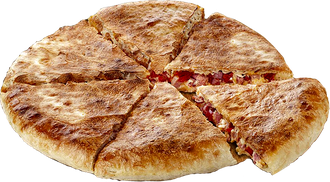 СОУС ТОМАТНЫЙ, ВЕТЧИНА, ПЕППЕРОНИ,КОЛБАСНЫЙ МИКС, ОГУРЧИК МАРИНОВАННЫЙ, ЛУК, СЫРНЫЙ МИКС.