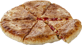 СОУС ДОМАШНИЙ, КУРОЧКА КОПЧЕНАЯ, ЛУК,ВЕТЧИНА, ПОМИДОР, ШАМПИНЬОНЫ КОНСЕРВИРОВАННЫЕ ,СЫРНЫЙ МИКС.